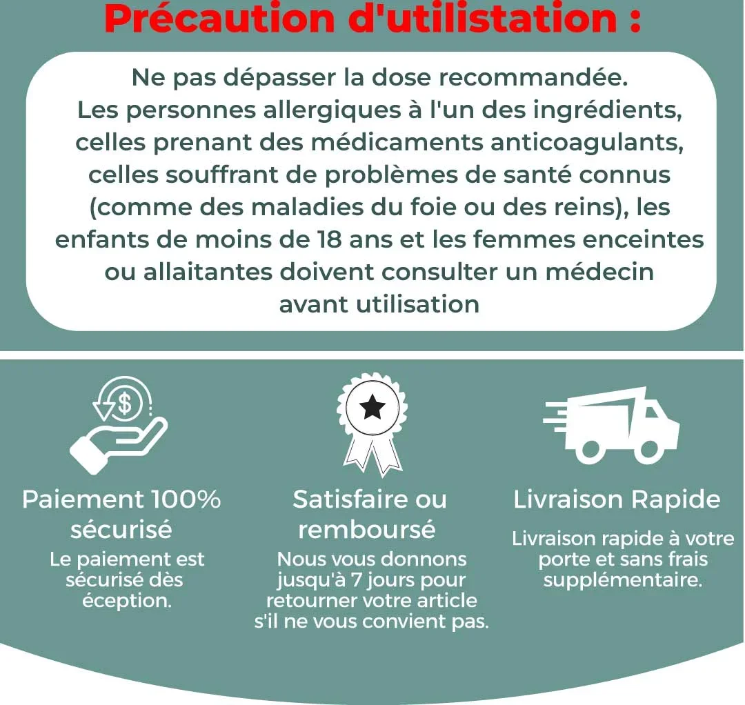 .🧴 Utilisation :Prenez 2 capsules par jour après les repas avec un verre d’eau pour des résultats optimaux.